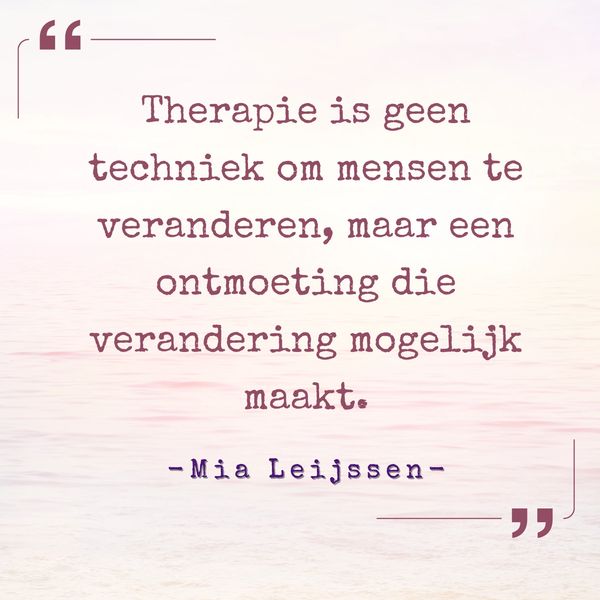 Therapie is voor mij een aandachtige ontmoeting die beweging brengt: ruimte om te voelen, te groeien, betekenis te geven en thuis te komen bij jezelf.
